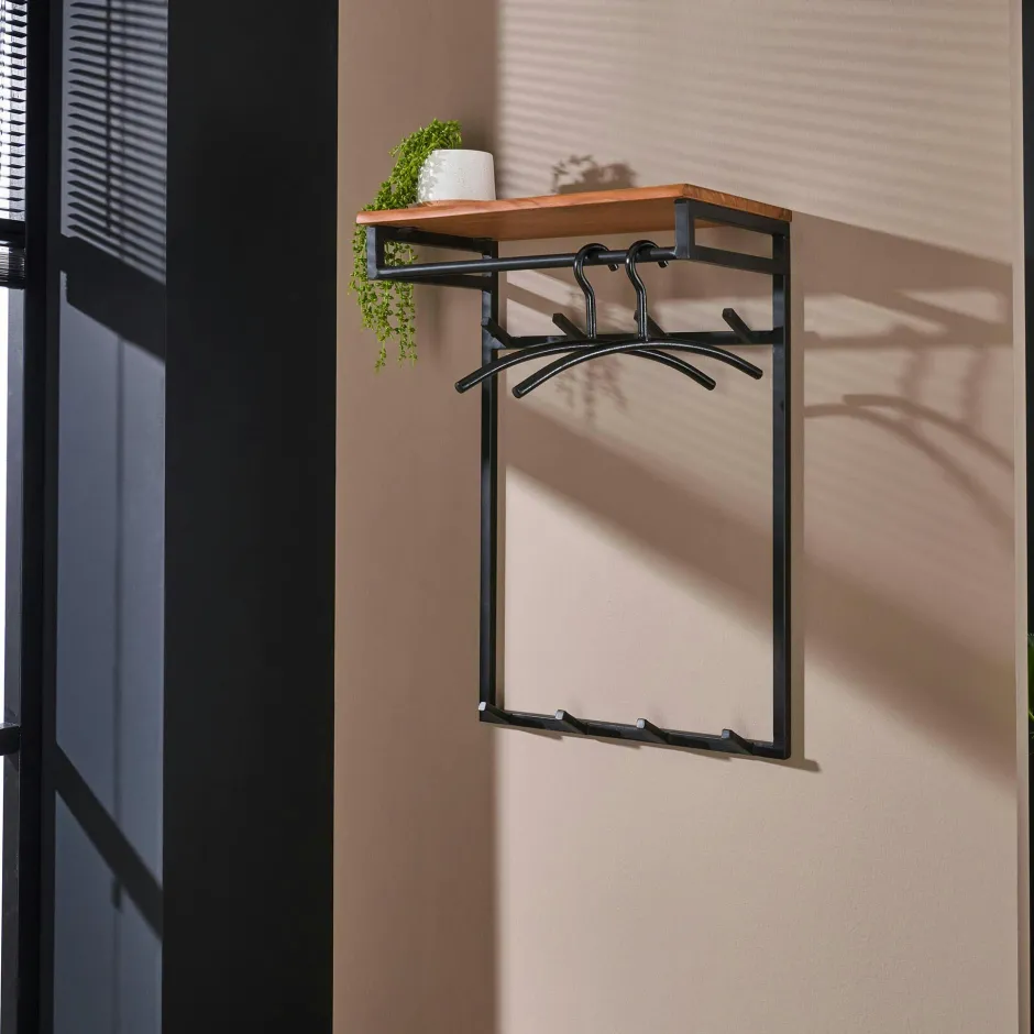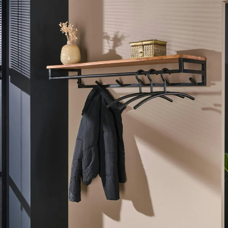 Melbourne Meubles D’Entrée·Portemanteaux|Portemanteaux Industriels|Portemanteau mural d’entrée bois massif 8 patères + tringle TRIBECA