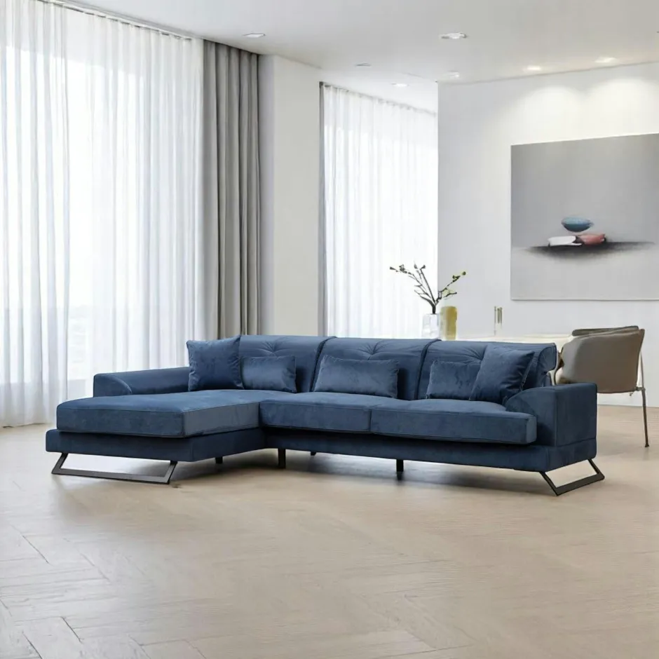 MILO Canapés En Tissu|Canapés 3 Places|Canapé d’angle bleu nuit – dossier inclinable, côté gauche