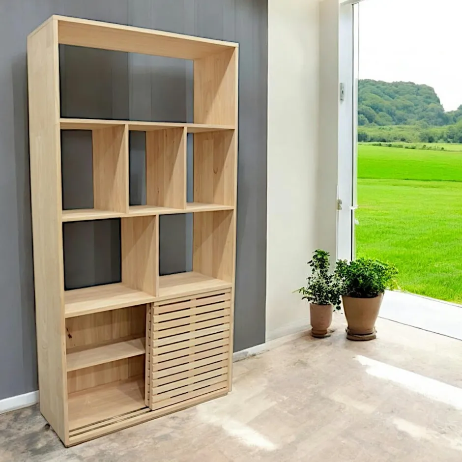 New Orléans Bibliothèques En Bois|Bibliothèques En Bois|Bibliothèque ouverte Hévéa 2 portes coulissantes Persiennes, 6 niches 100x35x190cm NEW ORLEANS