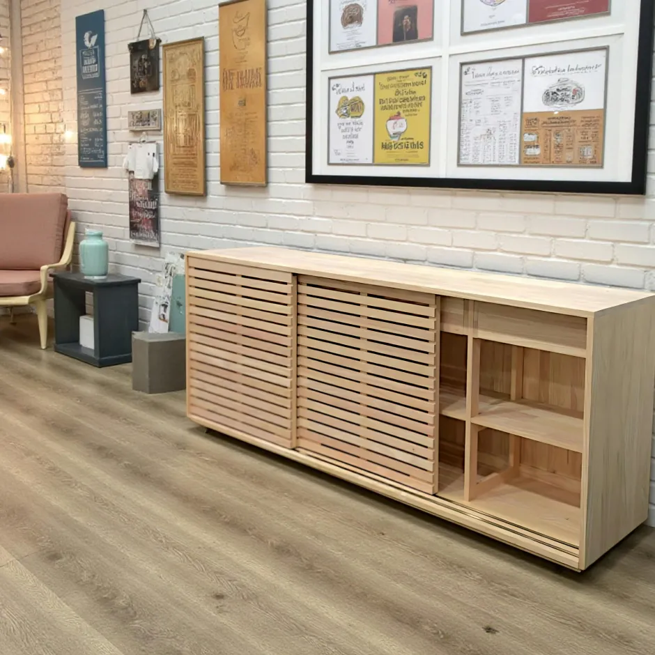 New Orléans Buffets Bas|Buffet Bas|Enfilade / Buffet long Hévéa 3 portes coulissantes Persiennes, 4 tiroirs intérieurs 200x45x80cm NEW ORLEANS