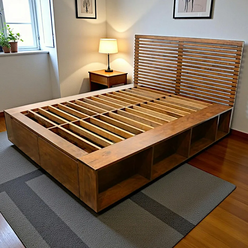 New Orléans Lits 2 Places|Lit 2 places Hévéa avec 2 tiroirs et 8 niches pour couchage 160×200 162x206x109cm NEW ORLEANS