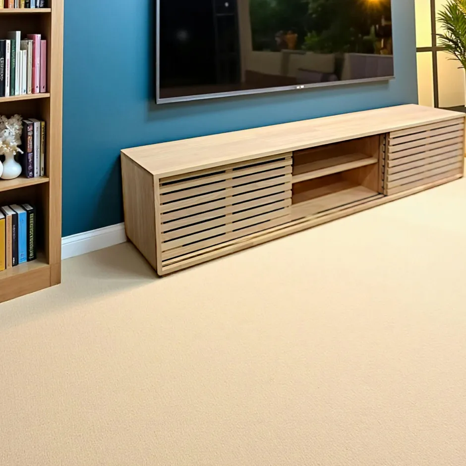 New Orléans Meubles Tv En Bois|Meuble TV Hévéa 3 portes coulissantes Persiennes 200x45x45cm NEW ORLEANS