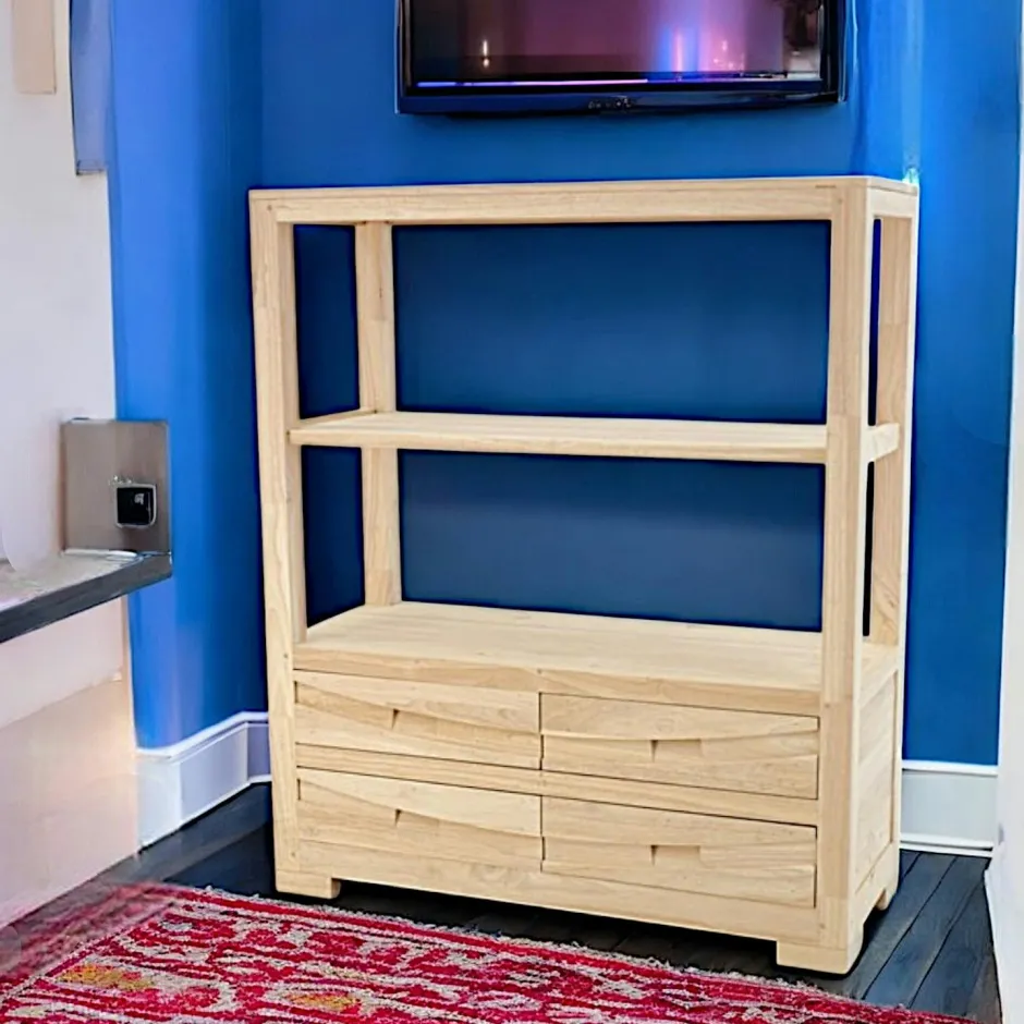 Niagara Bibliothèques En Bois|Bibliothèques En Bois|Bibliothèque Hévéa 4 tiroirs, 2 étagères 100x40x118cm