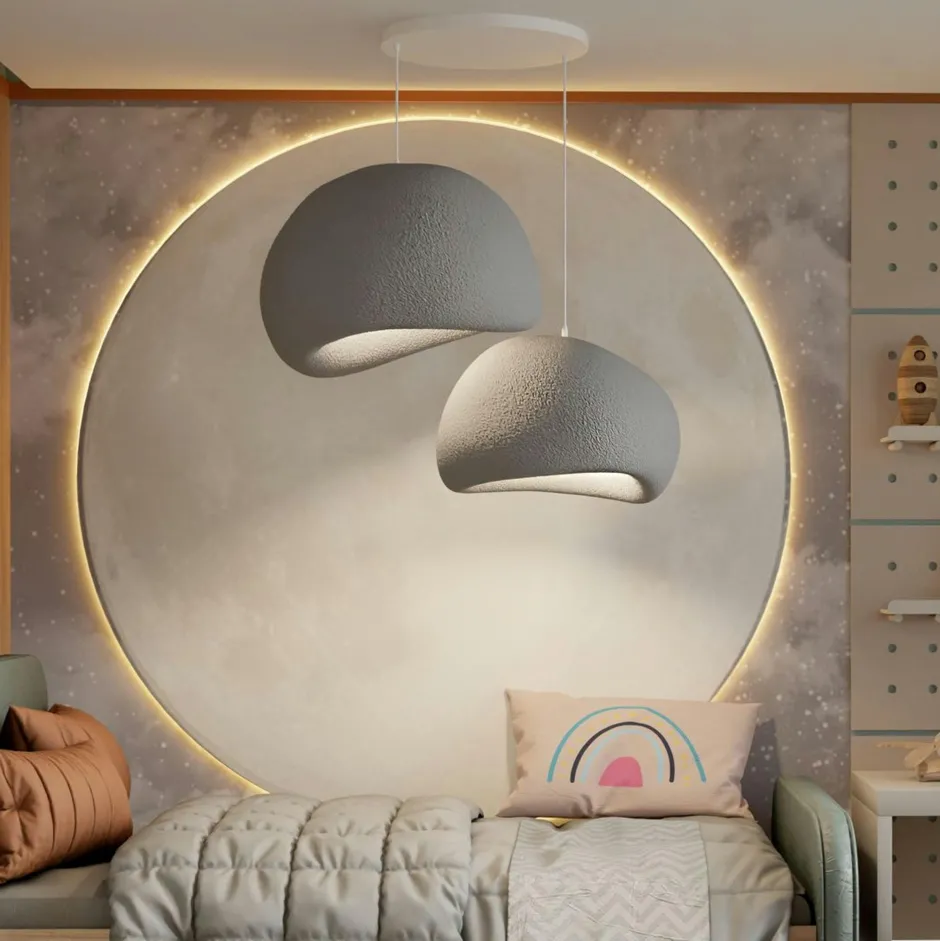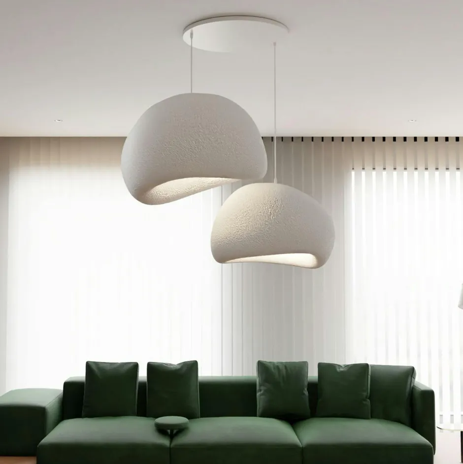 | Informations particulières : | Cette suspension design au style organique s’inspire de l’esthétique japonaise wabi-sabi. Avec ses abat-jour asymétriques, elle allie modernité et minimalisme naturel pour sublimer votre intérieur. Dimensions du grand abat-jour : 50 cm de large, 45 cm de profondeur, et 32 cm de hauteur ; et du petit abat-jour : 42 cm de large, 38 cm de profondeur, et 28 cm de hauteur. 2 ampoules E27 max 40W, non fournies. Protection IP20. Câble réglable en hauteur entre 60 cm et 120 cm. |