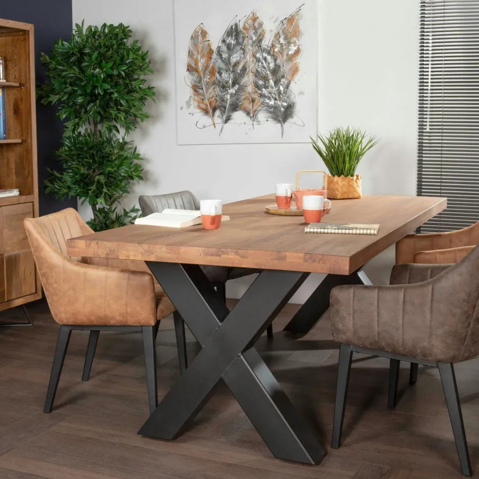 OKA Tables À Manger Rectangulaires|Tables À Manger En Chêne|Table salle à manger bois métal pied croisé 200 cm