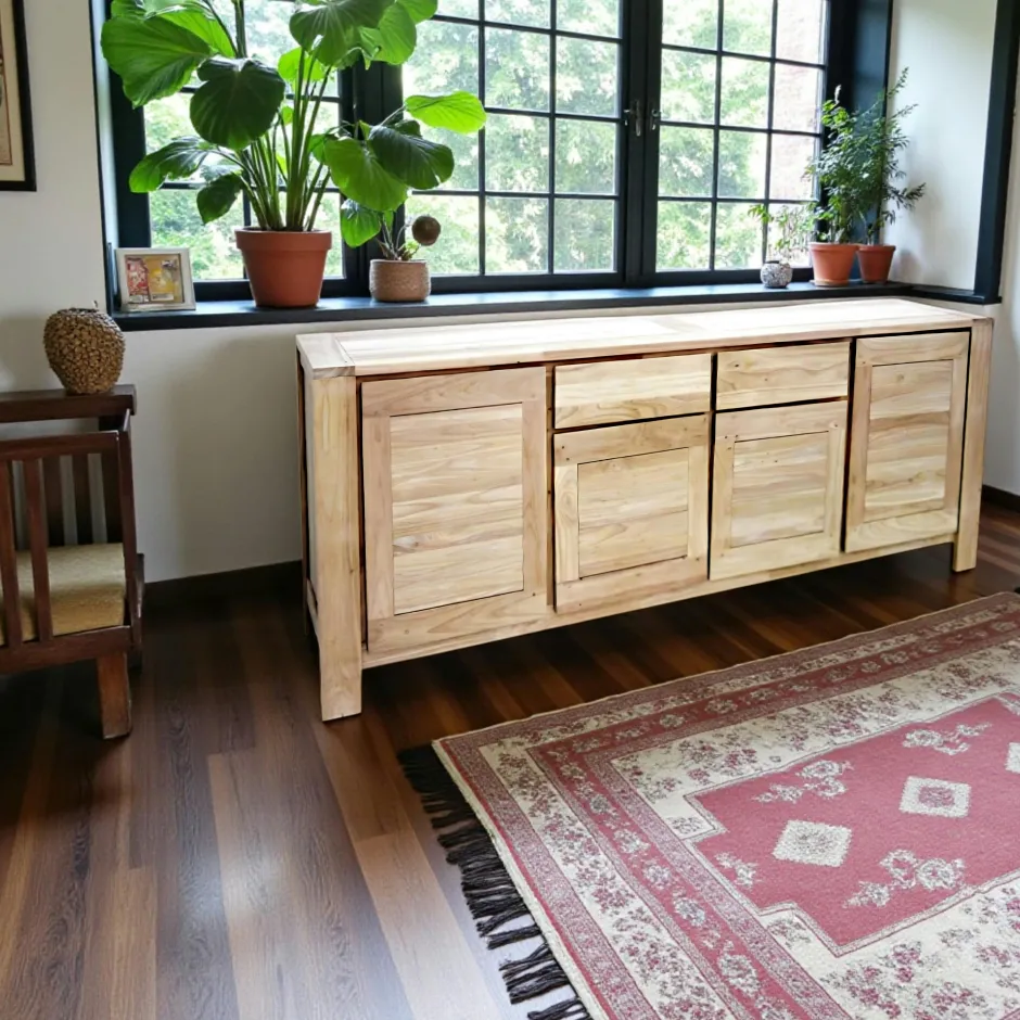 Tessa Buffets En Bois|Buffets En Bois|Buffet Enfilade Hévéa 4 portes, 4 tiroirs 200x50x100cm