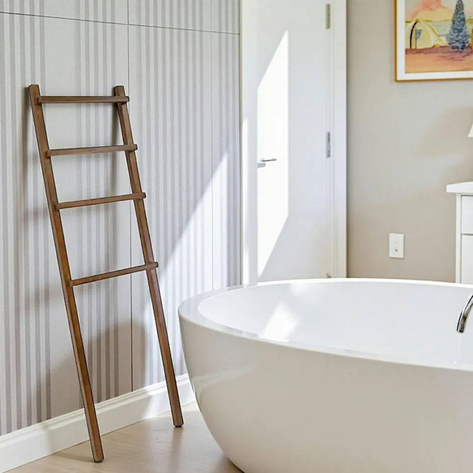 Olga Meubles De Salle De Bains·Rangement Salle De Bains|Porte serviette échelle hévéa h160cm