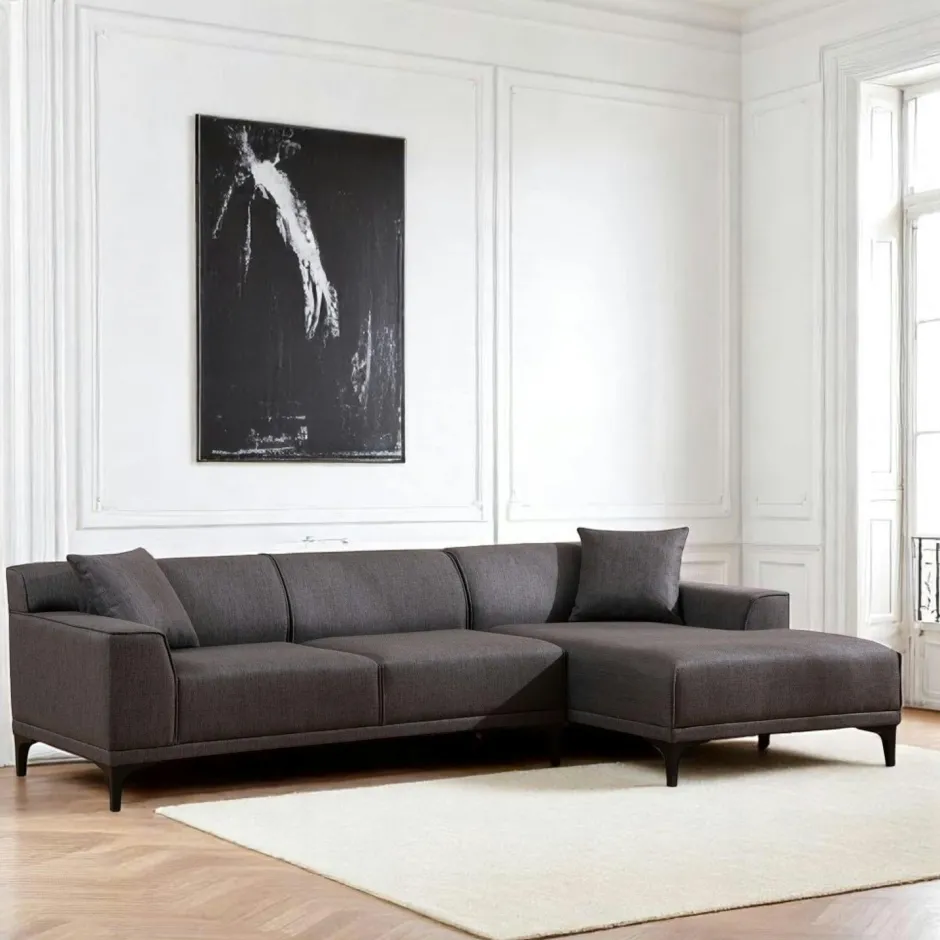 | Informations particulières : | 2 coussins décoratifs, dans la même finition, inclus. Coussins d’assise et de dossier fixes. |
