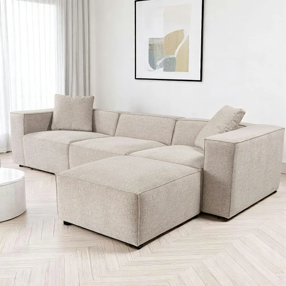 OSTUNI Canapés En Tissu|Canapés 3 Places|Canapé d’angle modulable taupe – tissu lin