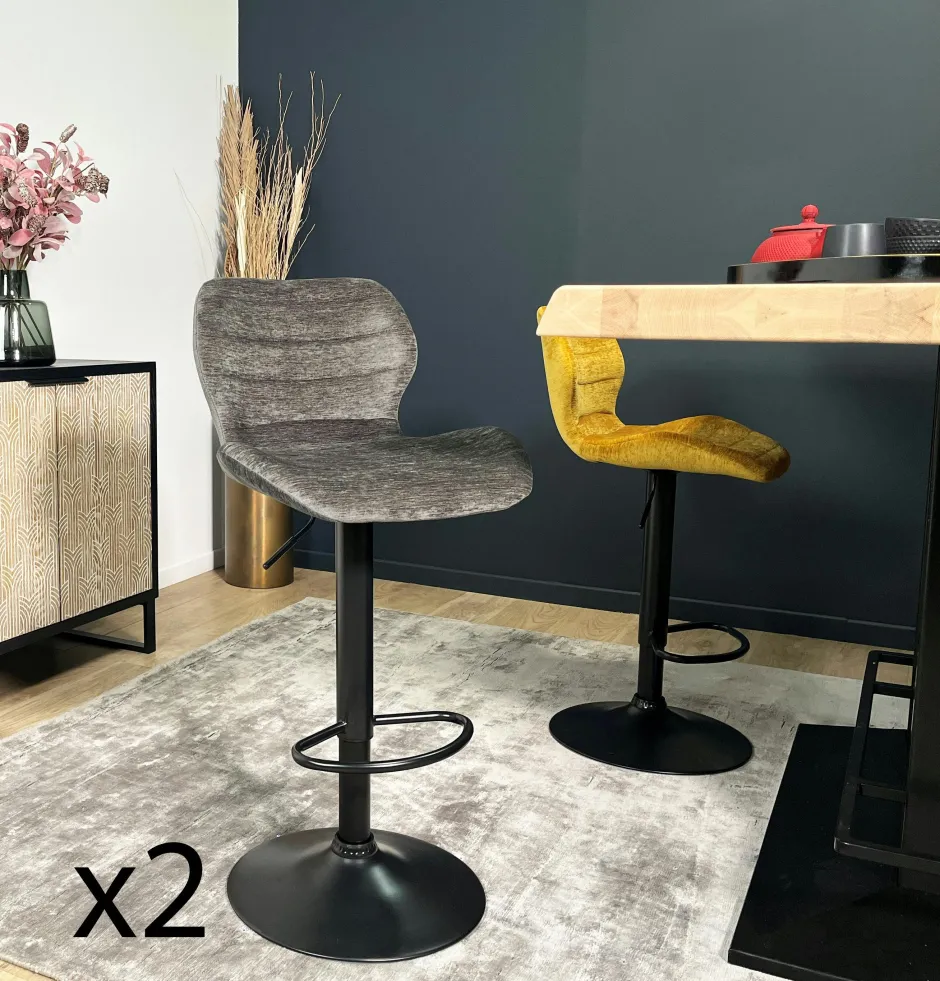PALERME Tabourets De Bar En Velours|Chaise de bar moderne en velours doré réglable en hauteur (lot de 2)