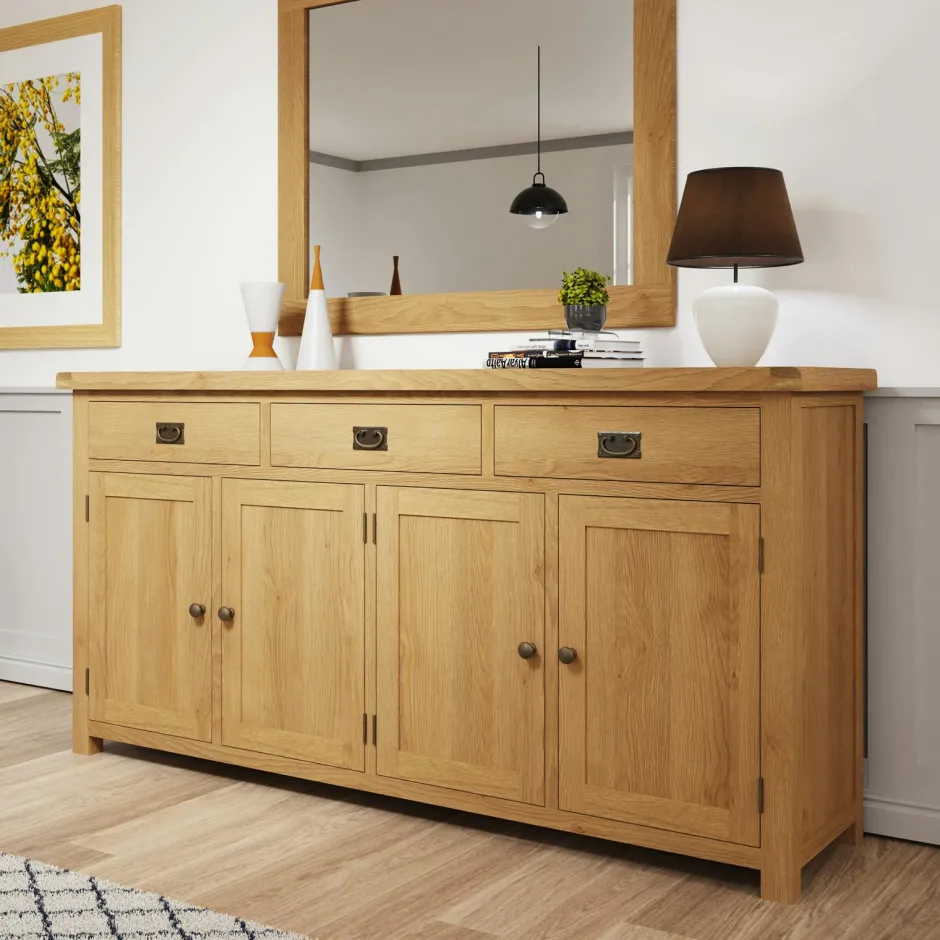 Tessa Buffets En Bois|Buffets En Bois|Buffet Enfilade Hévéa 4 portes, 4 tiroirs 200x50x100cm