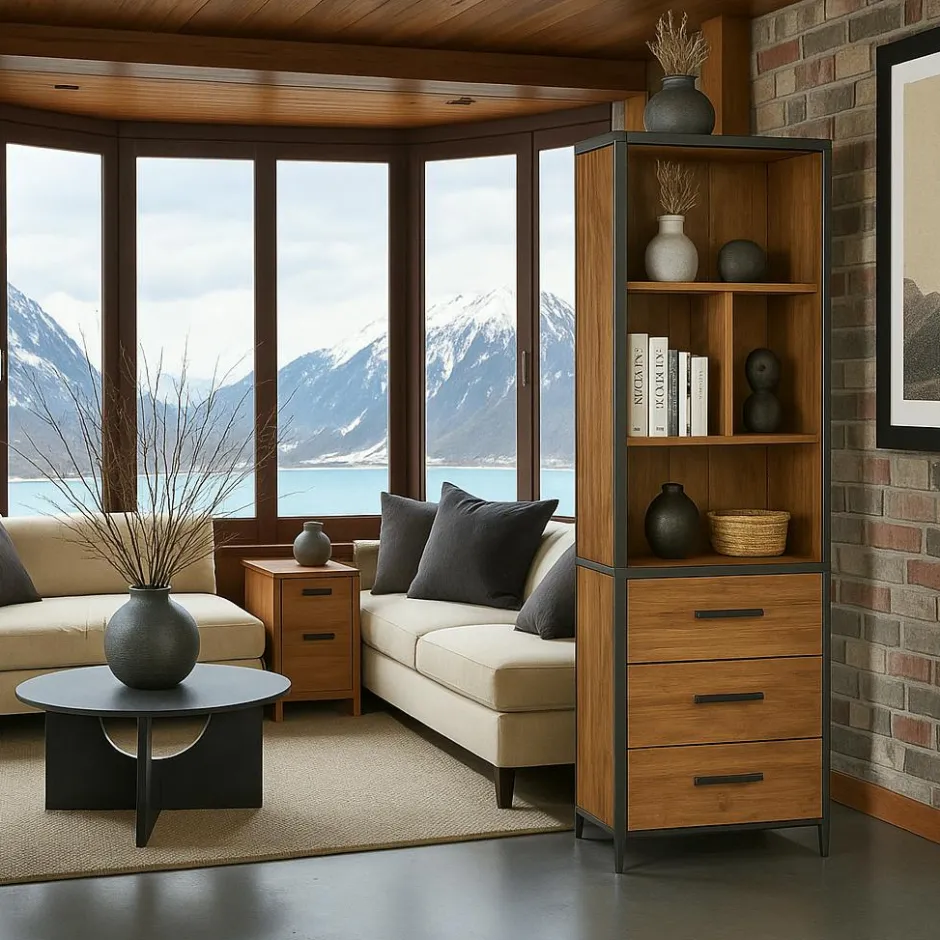 PUNE Meubles De Salon·Colonnes De Rangement|Meubles De Rangement·Colonnes De Rangement|Colonne en bois de teck poignées métal