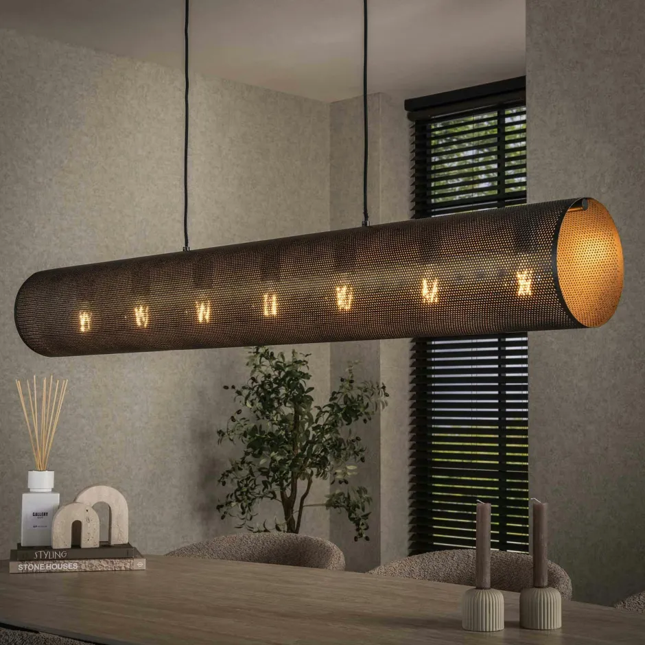 RALF Lampes À Poser·Lampe Style Industriel|Suspensions / Lustres|Suspension tube en métal noir perforé 7 lampes