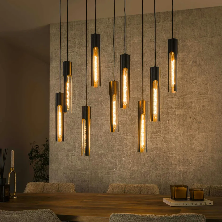 RALF Suspensions / Lustres|Lampes À Poser·Lampe Style Industriel|Suspension noire 9 abat-jour forme tube