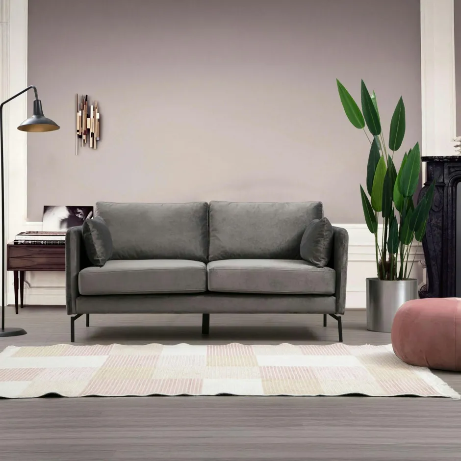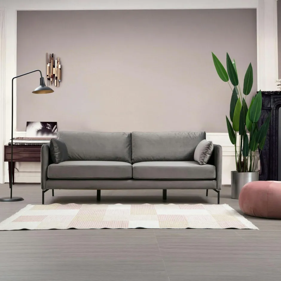RANCHI Canapés En Tissu|Canapé en velours 3 places gris, accoudoirs fins