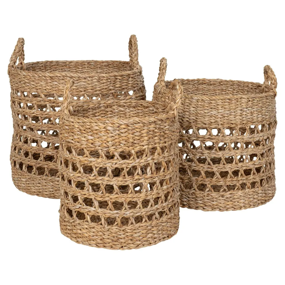 Rangements Déco·Paniers / Boîtes De Rangement|Caches-Pots|Panier cache-pot rond avec poignées, tressage ajouré (lot de 3)