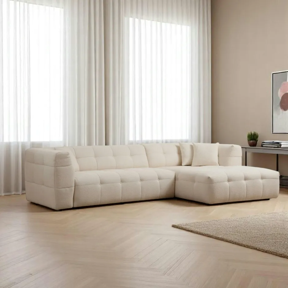 RAVELLO Canapés 3 Places|Canapés D’Angle|Canapé d’angle beige – capitonné, côté droit