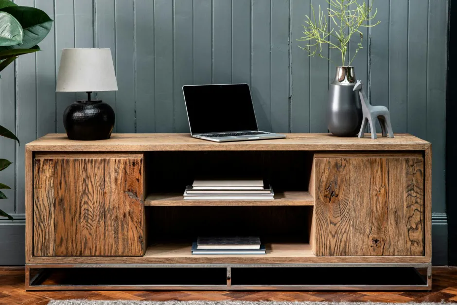 RIVERSIDE Meubles Tv En Bois|Meuble TV moderne chêne acier 120 cm