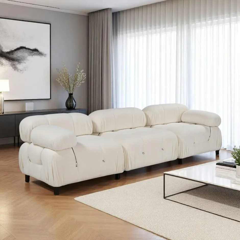 RONDA Canapés En Tissu|Canapés 3 Places|Canapé modulable 3 places – écru, bouclette