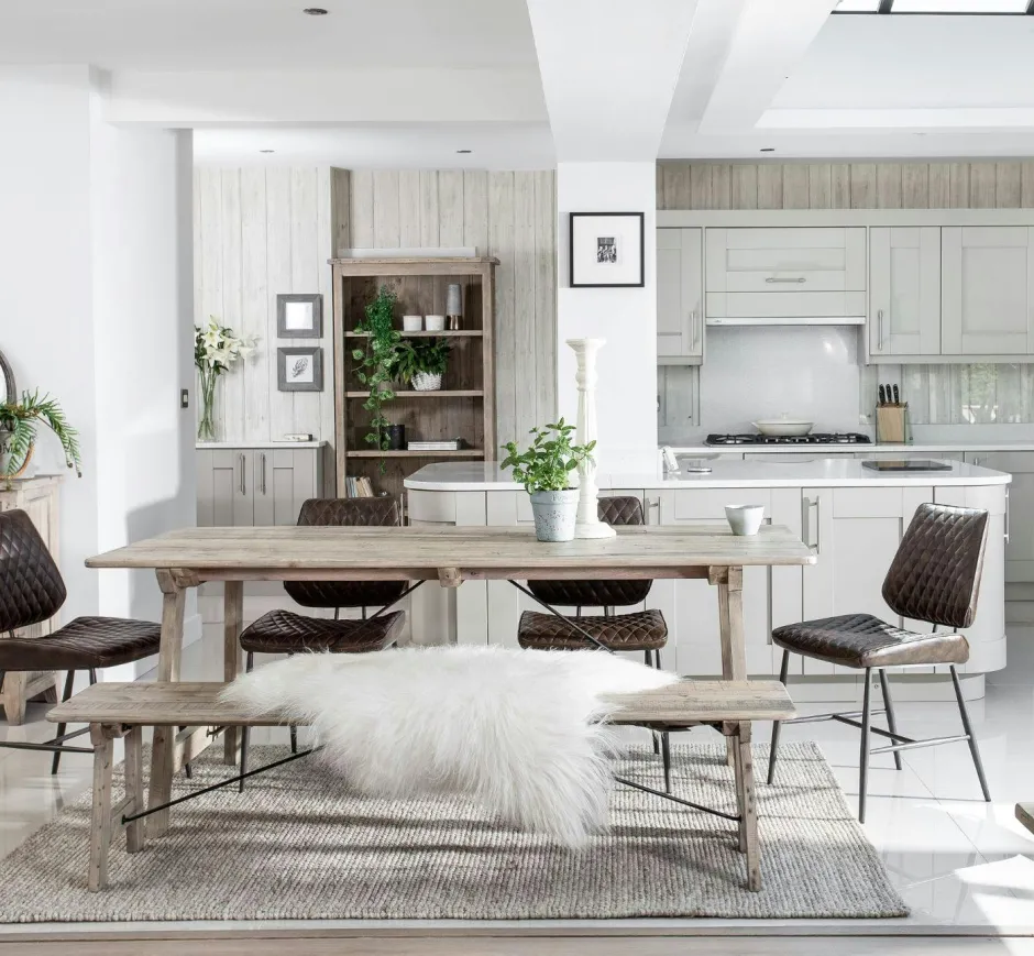 SALERNE Univers Déco·Maison De Campagne|Tables À Manger Rectangulaires|Table à manger en bois recyclé clair tréteaux 200 cm