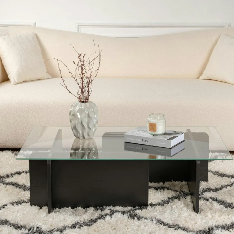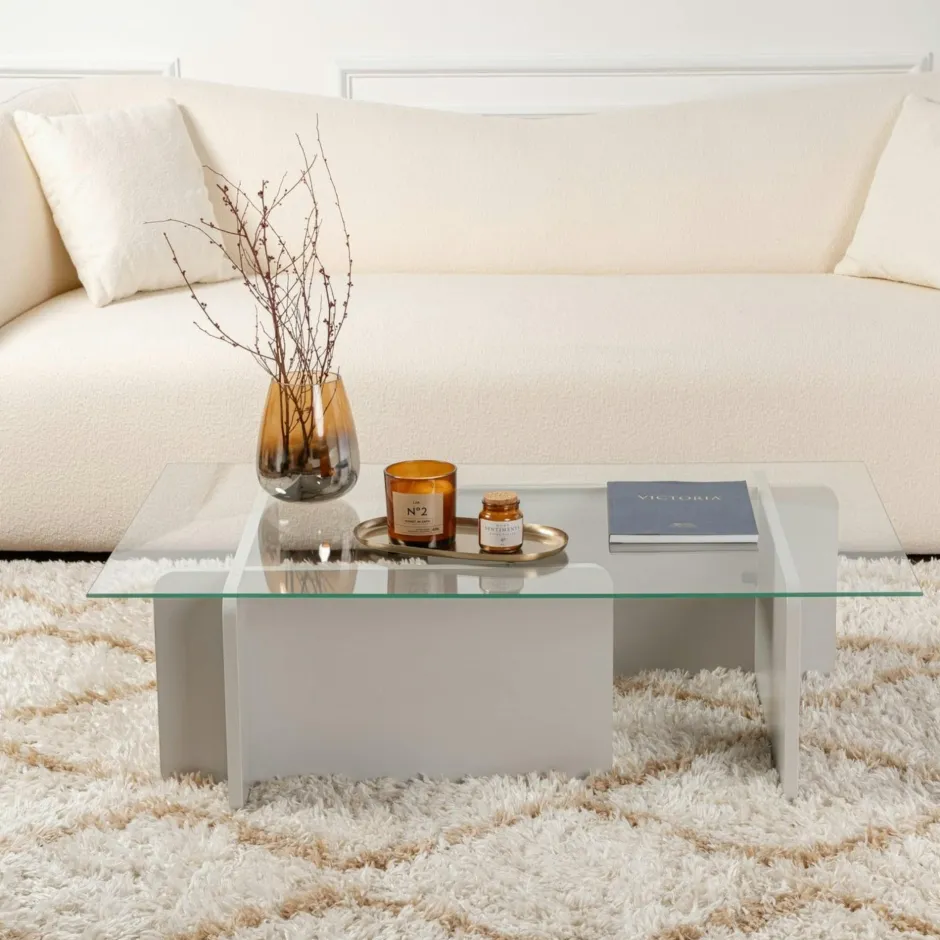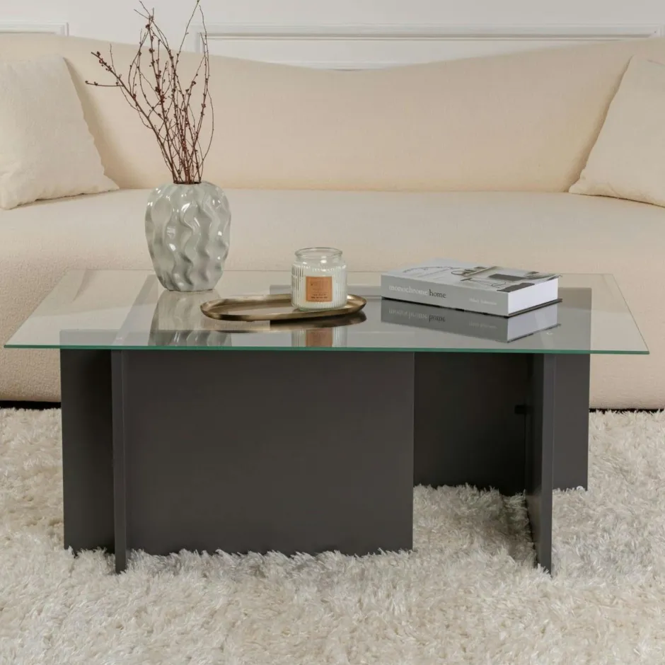 SALTA Tables Basses En Verre|Table basse verre déstructurée – base gris anthracite