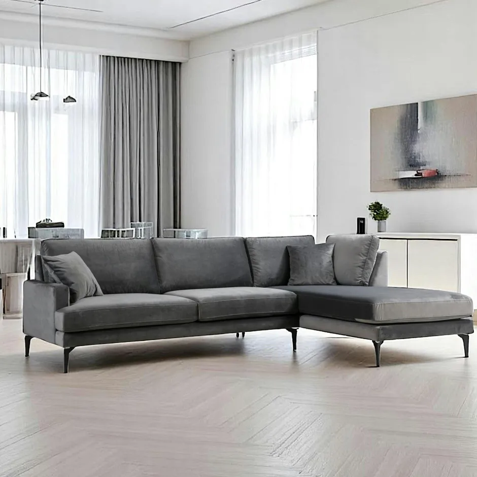 SEATTLE Canapés 3 Places|Canapés D’Angle|Canapé d’angle gris en velours – côté droit