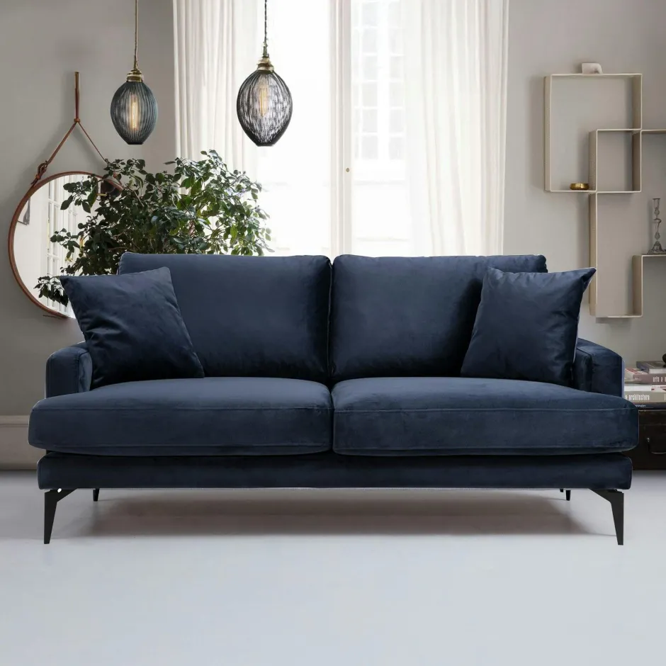 AMSTERDAM Canapés En Tissu|Canapé 2 places 1/2 bleu nuit – velours,