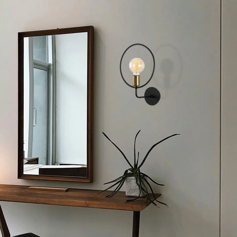 SFAX Appliques|Applique murale design noire, anneau & douille dorée