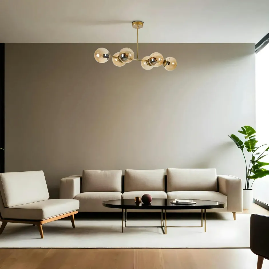 SIERRE Suspensions / Lustres|Suspension salle à manger vintage, 6 globes ambrés