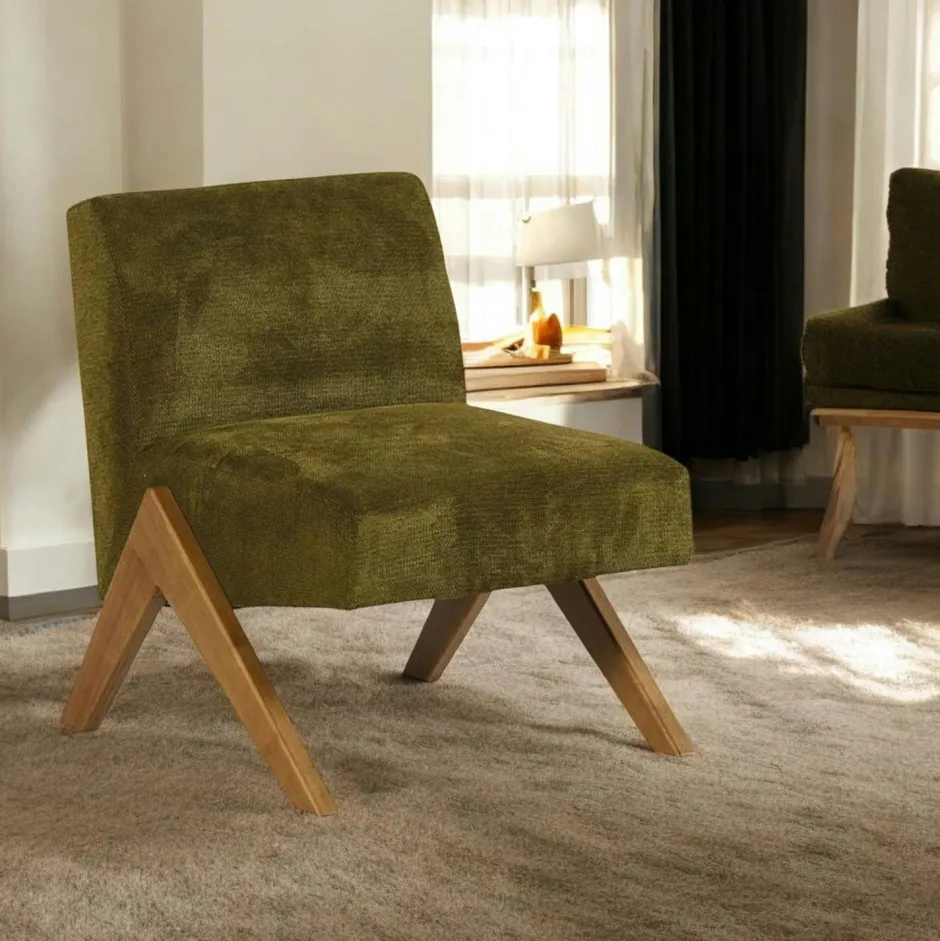 SOHO Fauteuils En Tissu|Fauteuil de salon bois et velours vert