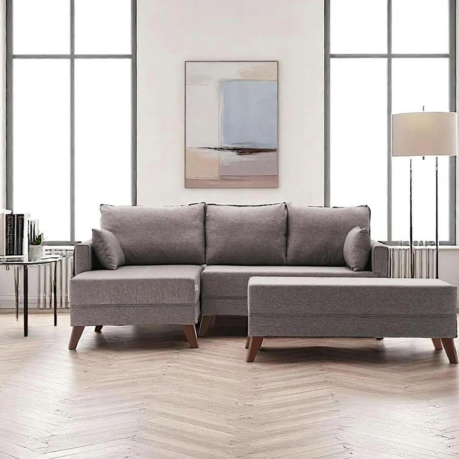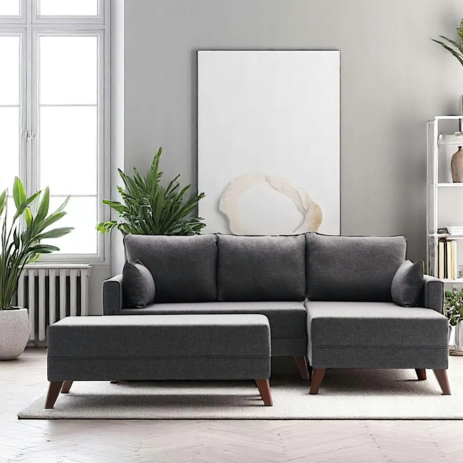 | Composition : | Structure : bois de sapin et panneaux MDF. Revêtement : 100 % polyester.Garnissage assise : mousse 28 kg/m³. Garnissage dossier : mousse particulaire 28 kg/m³. Pieds : plastique effet bois. |