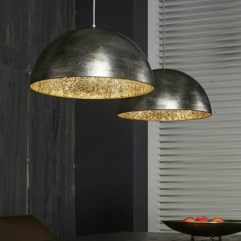 Suspensions / Lustres|Suspension contemporaine 2 demi-sphères argent vieilli