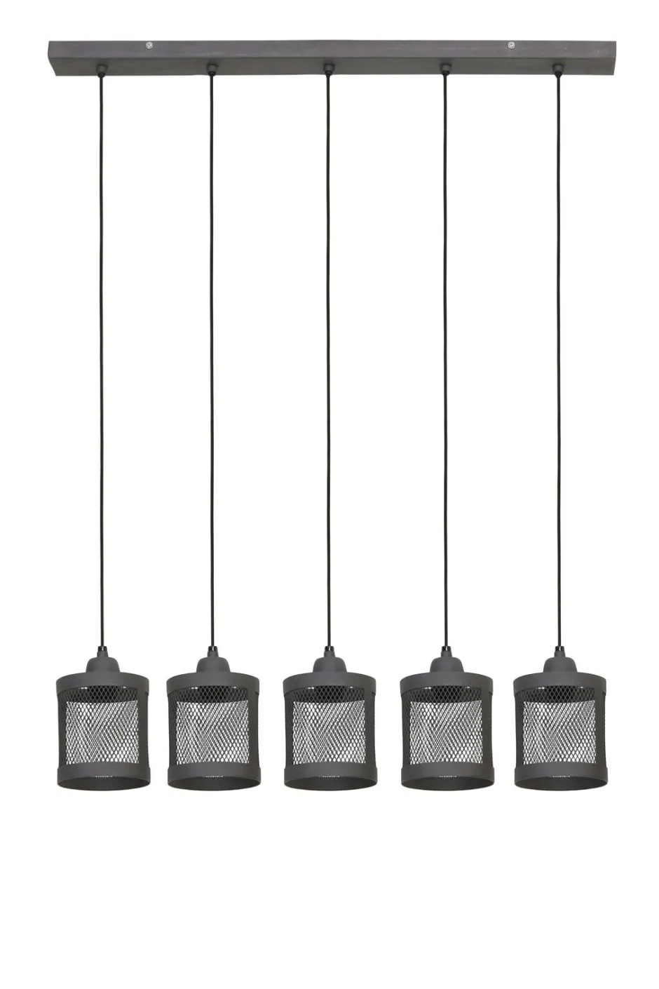 Suspensions / Lustres|Suspension industrielle métal gris 5 lampes horizontales