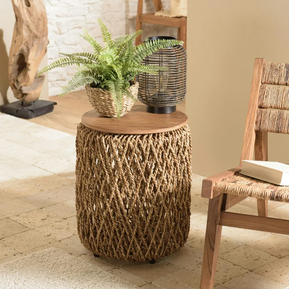 Swing Bouts De Canapé En Bois|Table d’appoint ronde 38 cm fibre de coco et bois recyclé