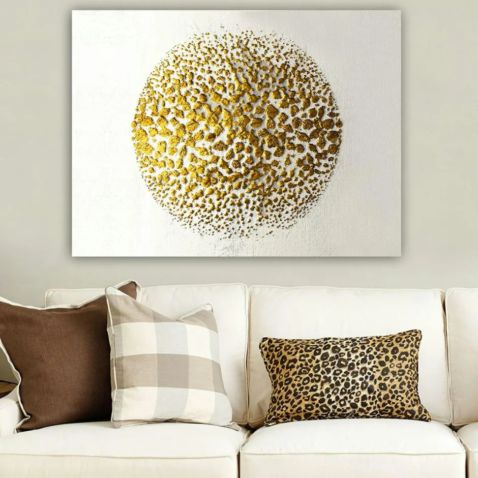 Be the first to review “Tableaux / Toiles|Tableau abstrait blanc et or – sphère texturée” Annuler la réponse