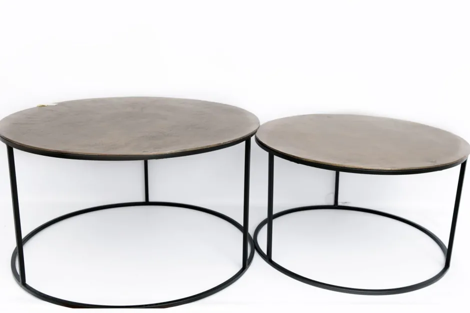 Tables Basses Gigognes|Table gigogne ronde en métal doré (lot de 2)