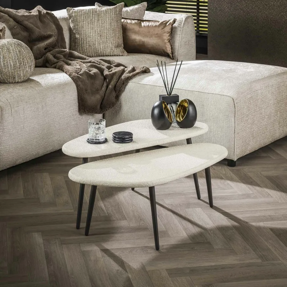 TAJ Tables Basses Design|Tables Basses Gigognes|Table d’appoint blanche en marbre composite forme triangle (lot de 2)
