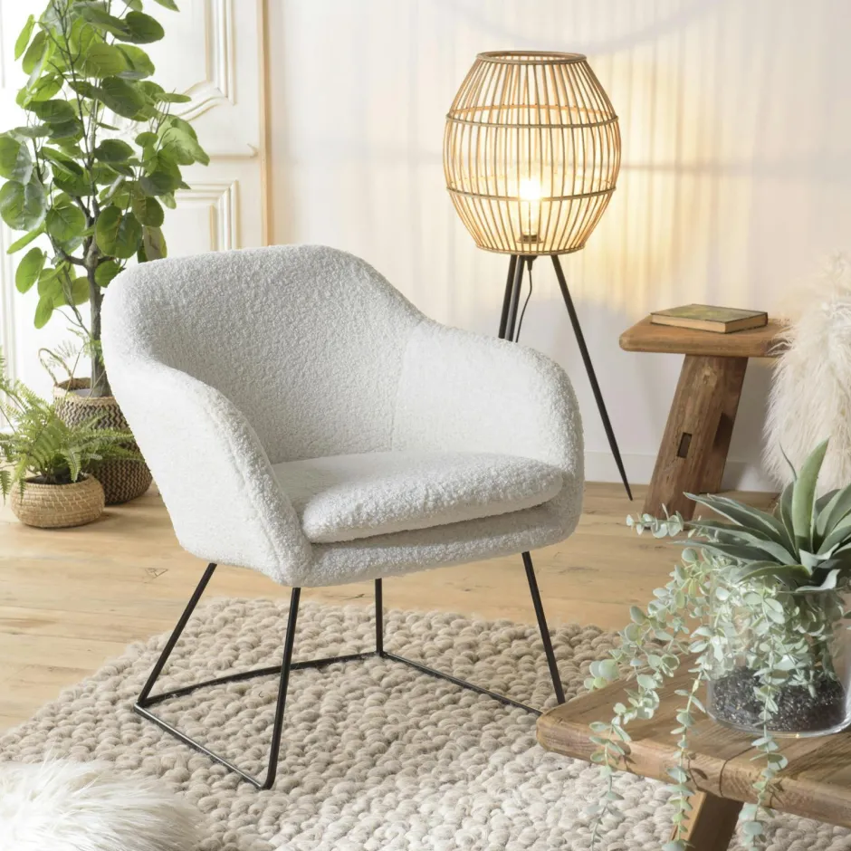 TIM Fauteuils En Tissu|Chaises Bouclettes|Fauteuil blanc contemporain en tissu bouclette