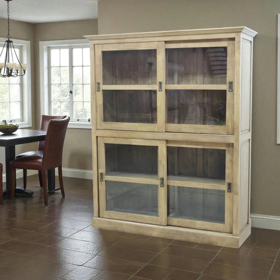Tradition Bibliothèques En Bois|Bibliothèques En Bois|Bibliothèque Hévéa 4 portes vitrées coulissantes 149x44x180cm