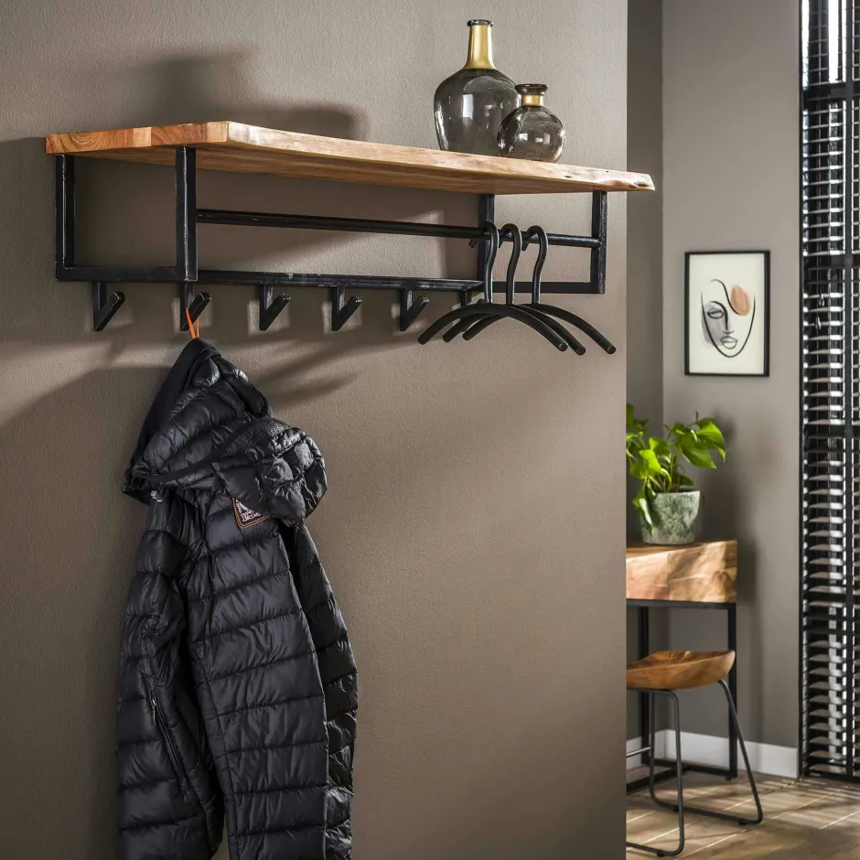 TRIBECA Meubles D’Entrée·Portemanteaux|Portemanteau mural bois 1 étagère 6 crochets