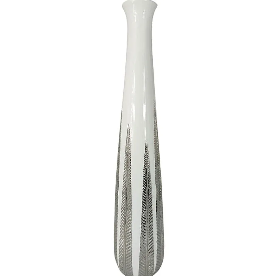 Vases|Grand vase blanc et argent avec feuilles