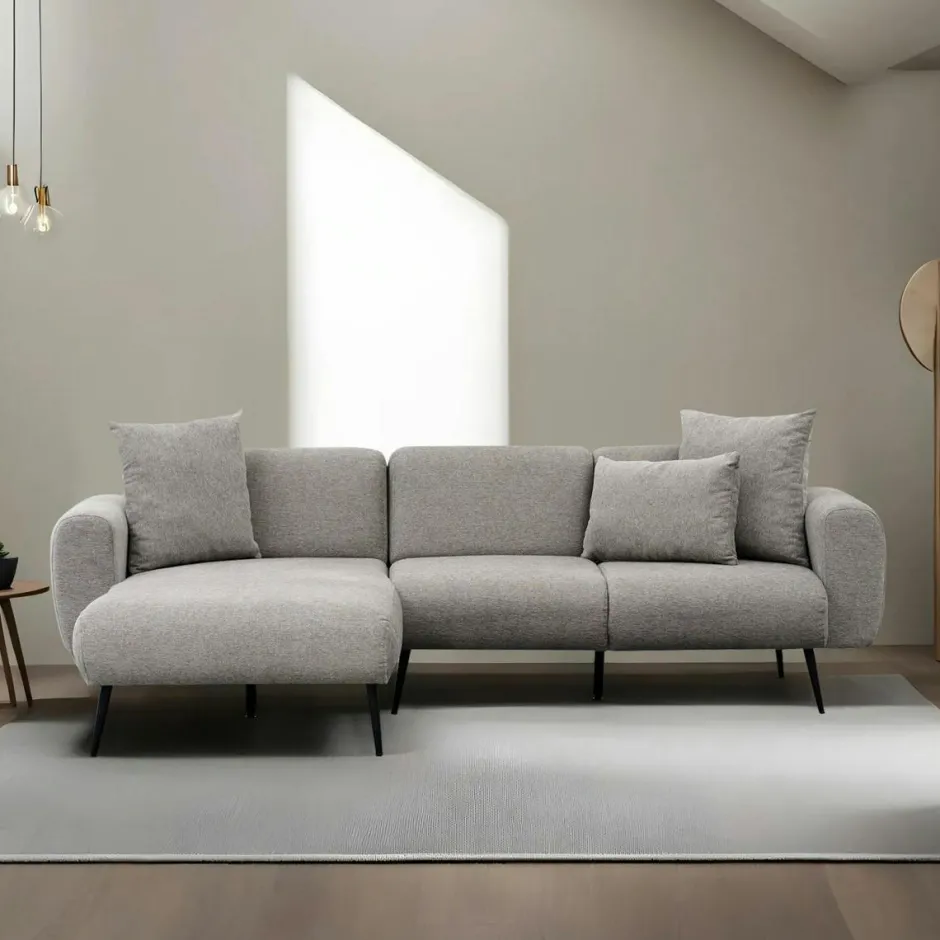 YOKOH Canapés En Tissu|Canapés D’Angle|Canapé d’angle gris clair pieds métal (côté gauche)
