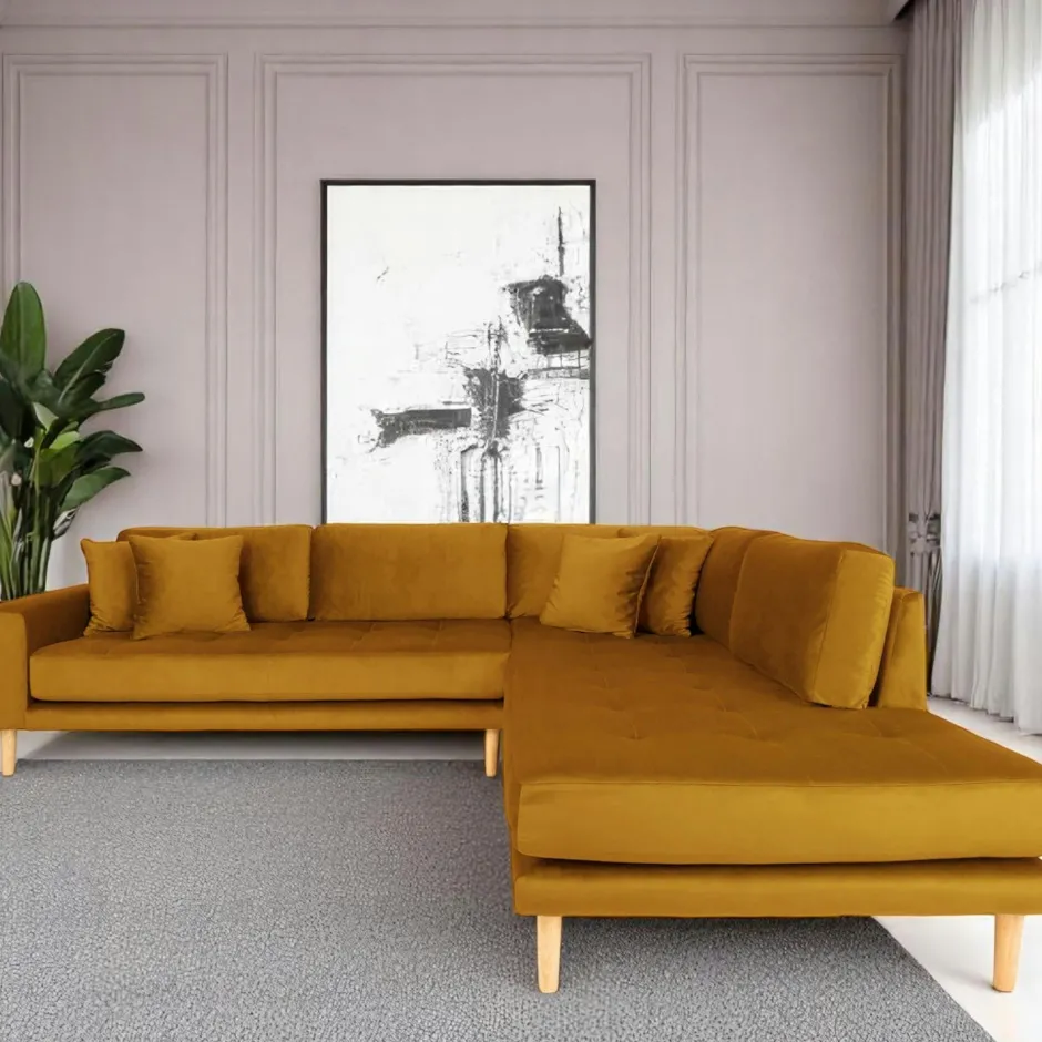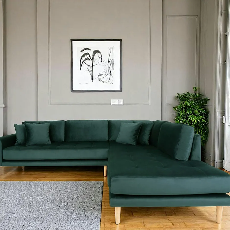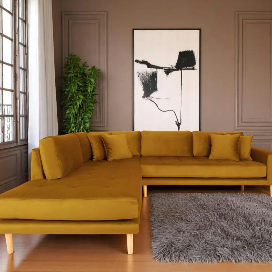 | Informations particulières : | Tissu velours. Assise capitonnée. Méridienne sur la partie droite pour s’étendre. 4 coussins décoratifs décoratifs inclus. Pieds en bois blond. Hauteur d’assise 40 cm, Profondeur d’assise 64 cm et 142 cm au niveau de la méridienne. |