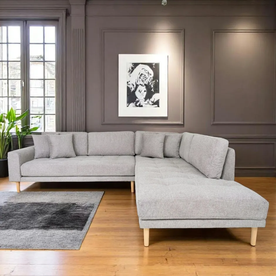 AMSTERDAM Canapés 3 Places|Canapés D’Angle|Canapé d’angle gris clair – pieds bois, côté droit