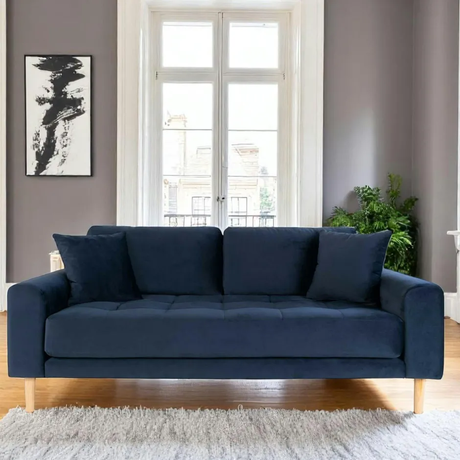 AMSTERDAM Canapés 3 Places|Canapés En Tissu|Canapé 3 places bleu nuit – velours,
