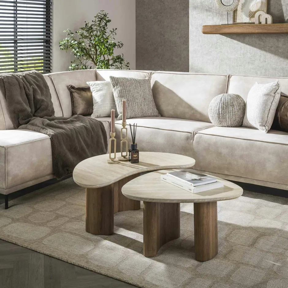 ASCOLI Tables Basses Gigognes|Table basse en céramique et bois, forme galet (lot de 2)