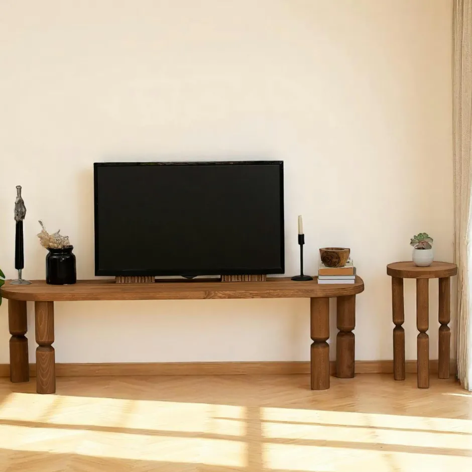 BOMA Meubles Tv En Bois|Banc TV en bois marron – pieds tournés, 140 cm