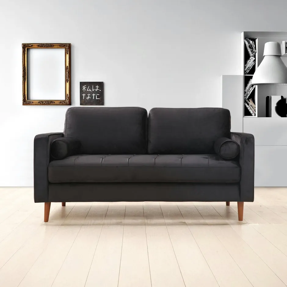 CHIBA Canapés En Tissu|Canapé 2 places velours noir avec coussins polochons