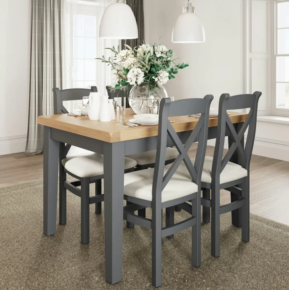 COVENTRY Chaises En Bois|Chaises Capitonnées|Chaise en bois et tissu avec dossier croisé finition charbon (lot de 2)