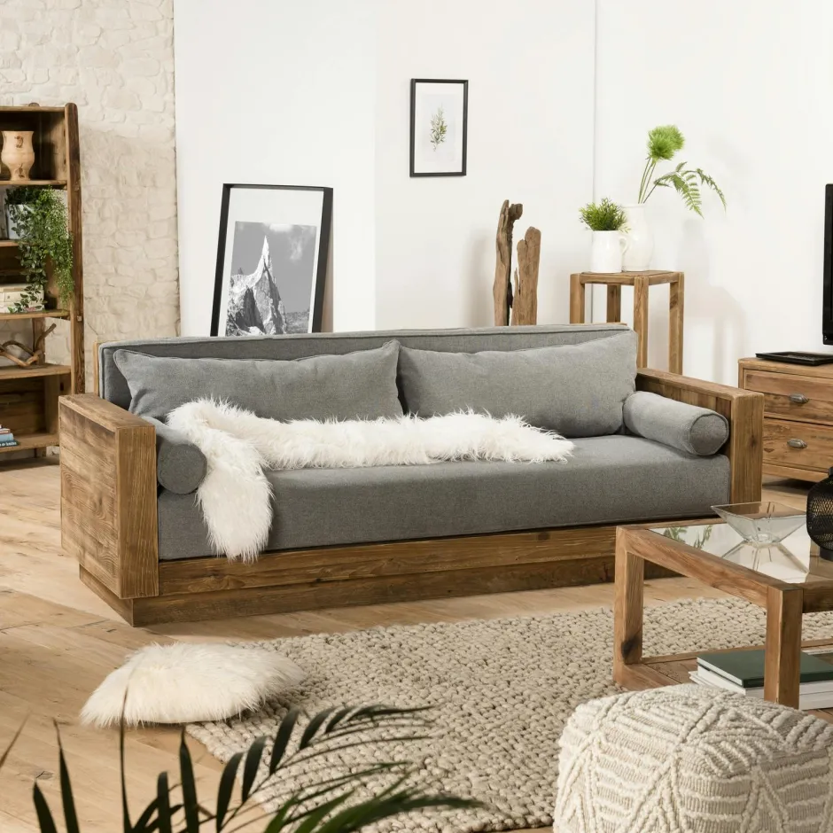 DENVER Univers Déco·Scandinave Hygge|Univers Déco·Maison De Campagne|Canapé gris 3 places en bois de pin recyclé